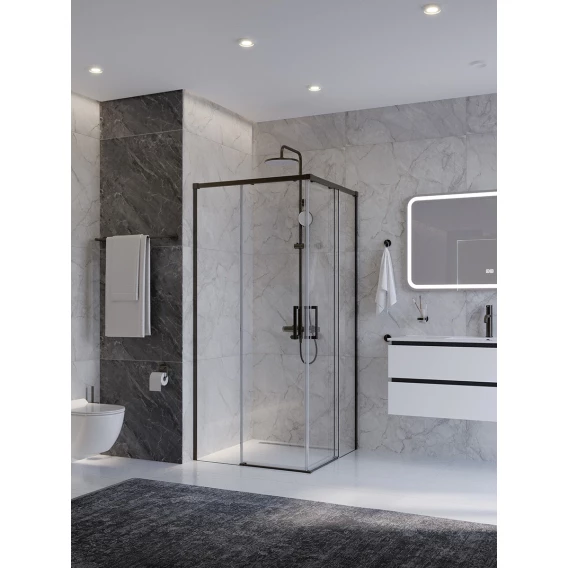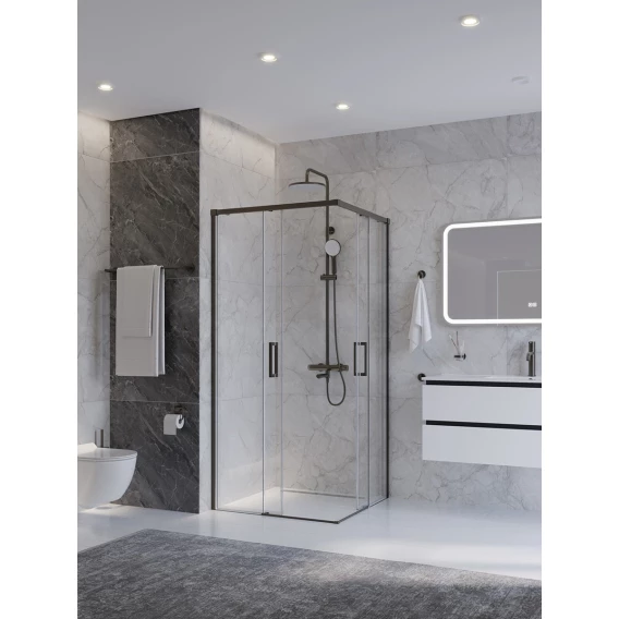 Душевой уголок Cezares Plane PLANE-A-2-90-C-GM 90x90 см, профиль оружейная сталь матовый, стекло прозрачное