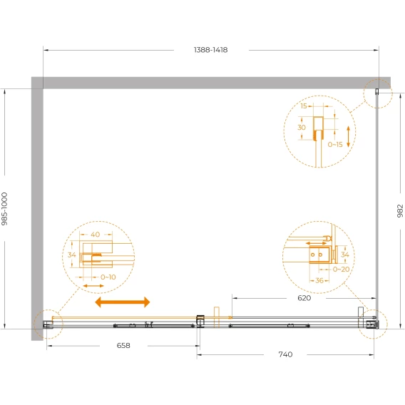 Душевой уголок Cezares Plane PLANE-AH-1-140/100-C-GM 140x100 см, профиль оружейная сталь матовый, стекло прозрачное