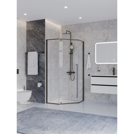Душевой уголок Cezares Plane PLANE-P-1-90-C-GM 90x90 см, профиль оружейная сталь матовый, стекло прозрачное