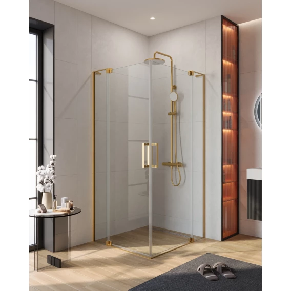 Душевой уголок Cezares Slider SLIDER-AH-2-70/80-100/110-C-BORO 100-110x70-80 см, профиль золотой матовый, стекло прозрачное