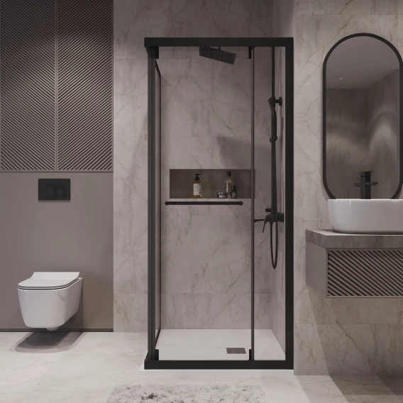 Душевой уголок Vincea Slim VSR-6SL8013CLB 130x80 см, профиль черный матовый, стекло прозрачное