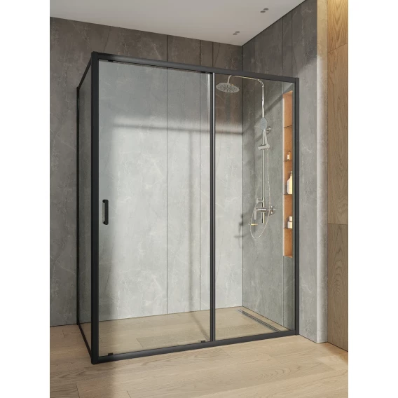 Душевой уголок Orange E23-15090TB 150x88,5 см, профиль черный матовый, стекло прозрачное