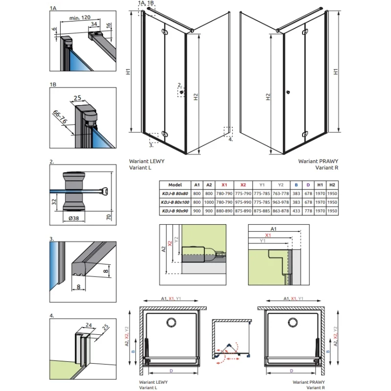 Душевой уголок Radaway EOS KDJ B 80Lx80 137413-01-01L прозрачное