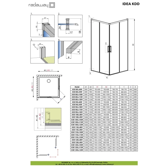 Душевой уголок Radaway Idea Black KDD 90Lx90R прозрачное