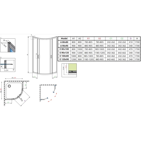 Душевой уголок Radaway Premium Plus A 90×90 30401-01-05N профиль хром, стекло графитовое