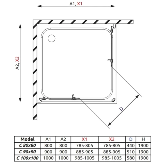 Душевой уголок Radaway Premium Plus C 100×100 30443-01-01N профиль хром, стекло прозрачное