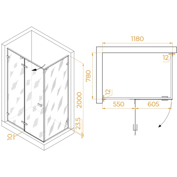 Душевой уголок RGW SV-040 Stilvoll 353204028-21 118x78 см, профиль хром, стекло матовое