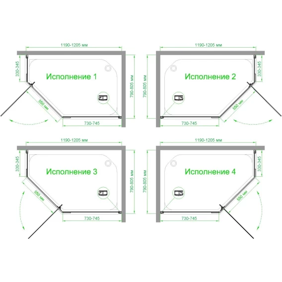 Душевой уголок 110x90 см RGW LE-41B (LE-12B+Z-050-2B) Leipzig 34124181-014 прозрачное