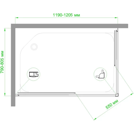 Ширина входа 55 см