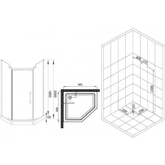 Душевой уголок с поддоном Esbano ESR-7160B ESUGR7160B 90x90 см, профиль черный матовый, стекло прозрачное