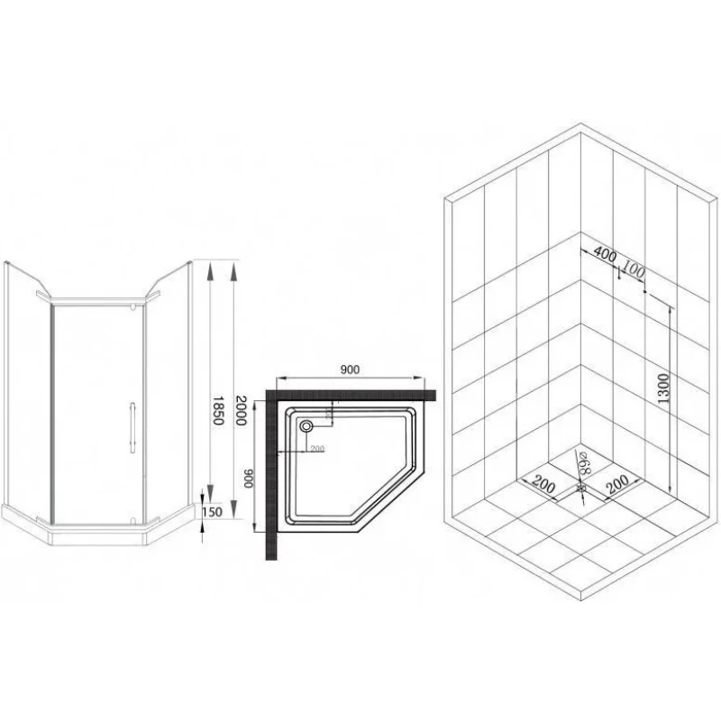 Душевой уголок 98x98 см Rea Hugo REA-K6605 прозрачное