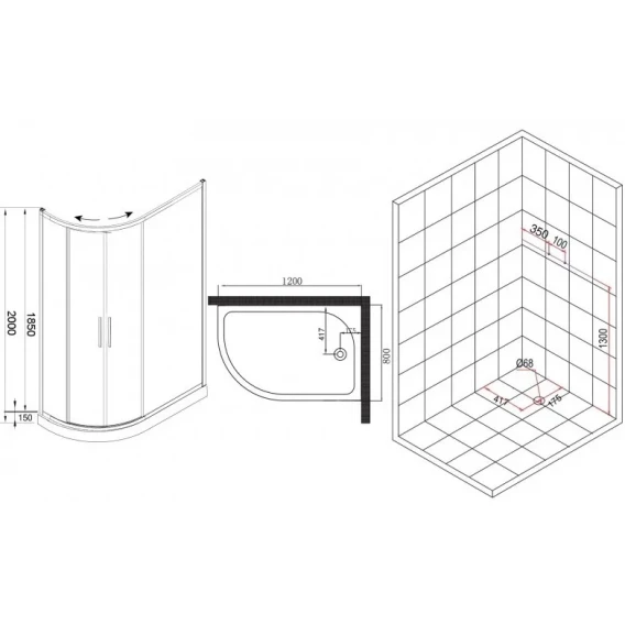 Душевой уголок с поддоном Esbano ESR-8027A ESUGR8027AR 120x80 см R, профиль хром, стекло матовое