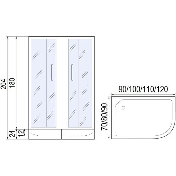 Душевой уголок с поддоном Мономах 90/70/180 МЗ BL L 10000012455 90x70 см L, профиль черный матовый, стекло интимато