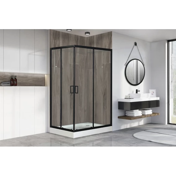 Душевой уголок с поддоном Royal Bath RB8120HP-T-BL-R 120x80 см R, профиль черный матовый, стекло прозрачное