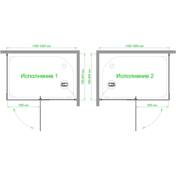 Ширина входа 55 см
