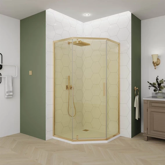 Душевой уголок Veconi Ottimo OP10G-8080-14-C9 80x80 см, профиль золотой матовый, стекло янтарное