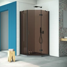 Душевой уголок Vegas Glass AFA-Pen Retta 100 02M 05 R 100x100 см R, профиль черный матовый, стекло бронза