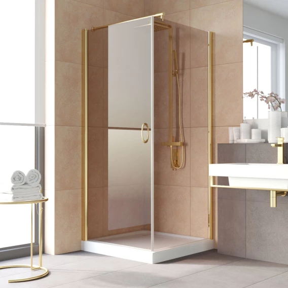 Душевой уголок Vegas Glass EP-Fis LUX 80*100 09 05 L 80x100 см L, профиль золотой, стекло бронза