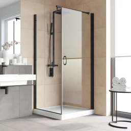 Душевой уголок Vegas Glass EP-Fis LUX 80*90 02M 01 R 80x90 см R, профиль черный матовый, стекло прозрачное