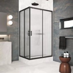 Душевой уголок Vegas Glass ZA-F Protec 100*80 02M Moru 100x80 см, профиль черный матовый, стекло рифленое