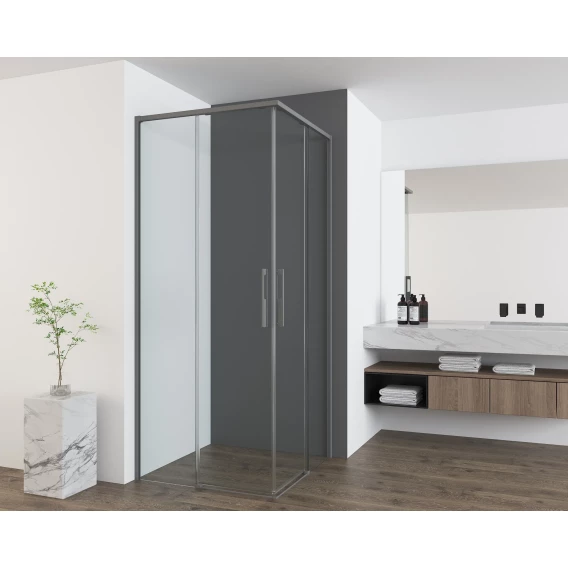 Душевой уголок Vincea Ultima VSS-7UL8080CLGM 80x80 см, профиль вороненая сталь, стекло прозрачное