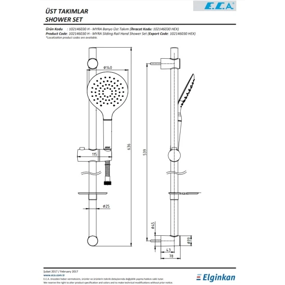 Душевой гарнитур E.C.A Myra 102146030HEX