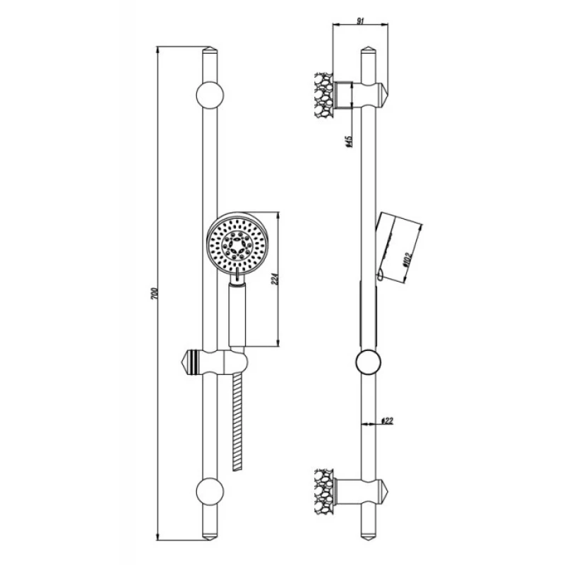 Душевой шланг, Душевая лейка, Держатель для душевой лейки, Штанга душевая
