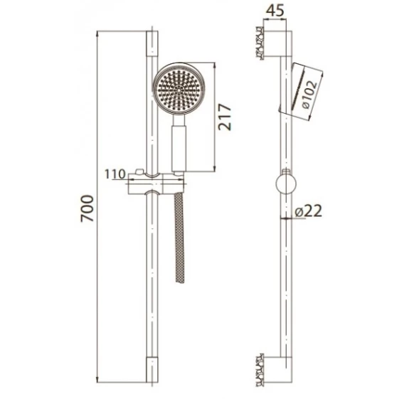 Душевой шланг, Душевая лейка, Держатель для душевой лейки, Штанга душевая
