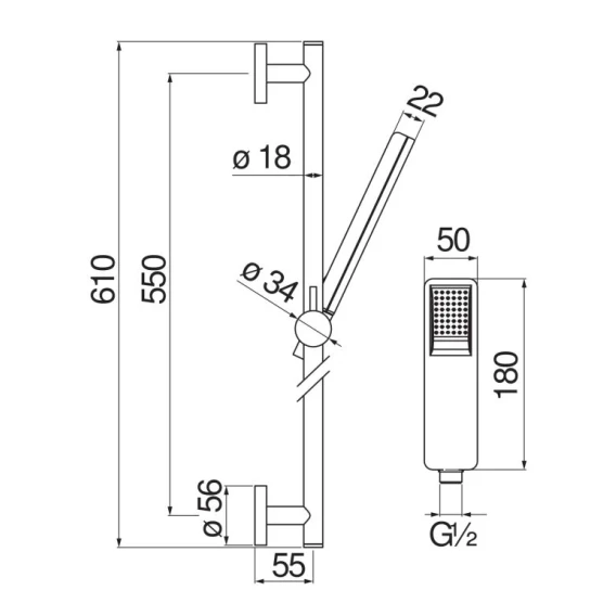 Крепление, Душевой шланг, Душевая лейка, Держатель для душевой лейки, Штанга душевая
