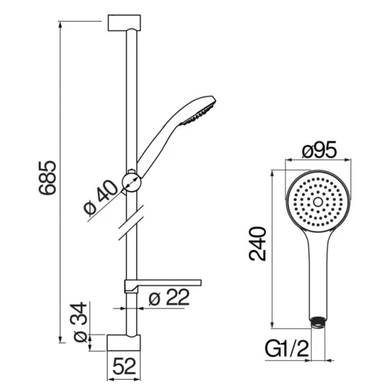 Крепление, Душевой шланг, Душевая лейка, Держатель для душевой лейки, Мыльница, Штанга душевая