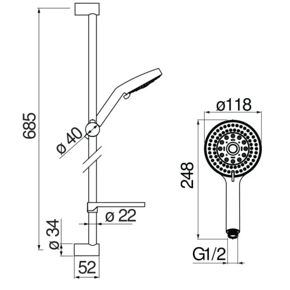 Крепление, Душевой шланг, Душевая лейка, Держатель для душевой лейки, Мыльница, Штанга душевая