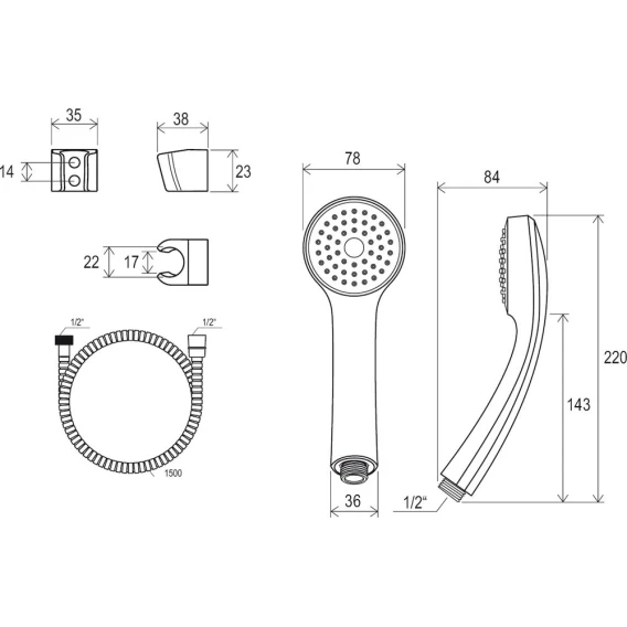 Душевой шланг, Душевая лейка, Держатель для душевой лейки