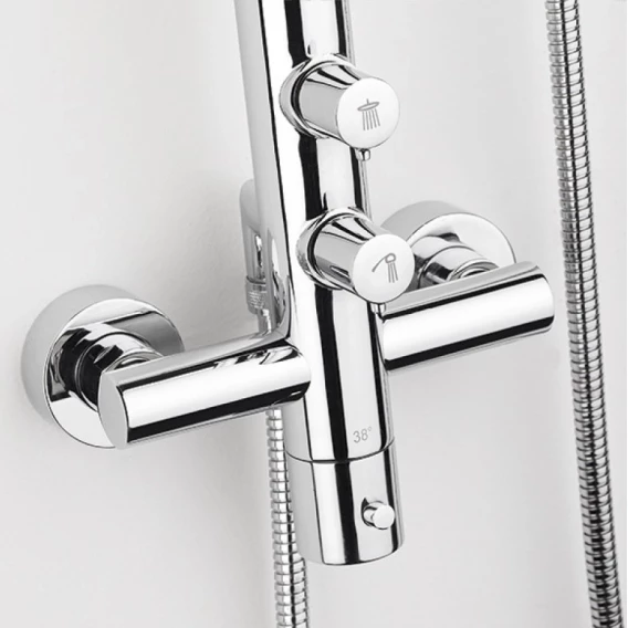 Металлическая розетка, Эксцентрики, Душевой шланг, Душевая лейка, Держатель для душевой лейки, Верхний душ, Кронштейн, Мыльница, Штанга душевая, Термостат