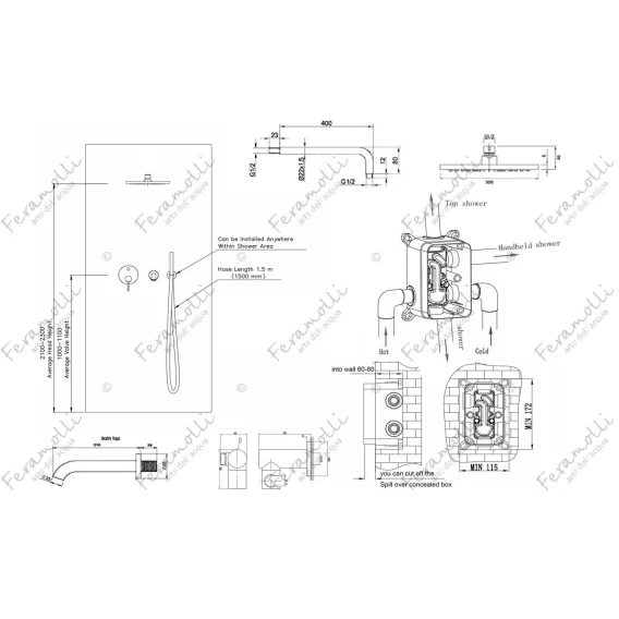Душевой комплект 300 мм Feramolli Ele BL707-12