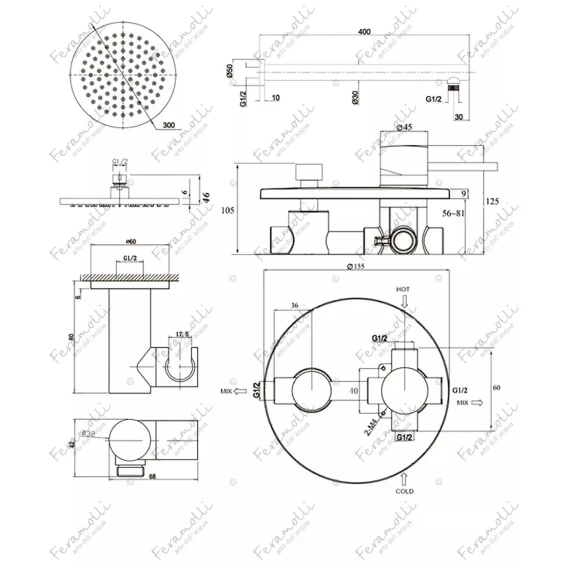 Душевой комплект 300 мм Feramolli Ele BL703-12