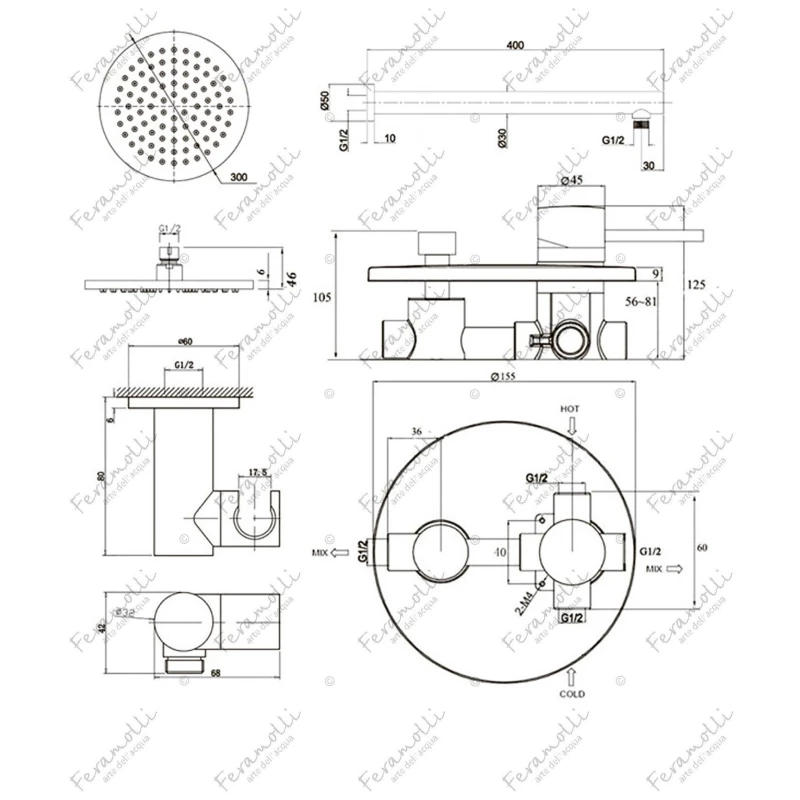 Душевой комплект 300 мм Feramolli Ele CL703-12