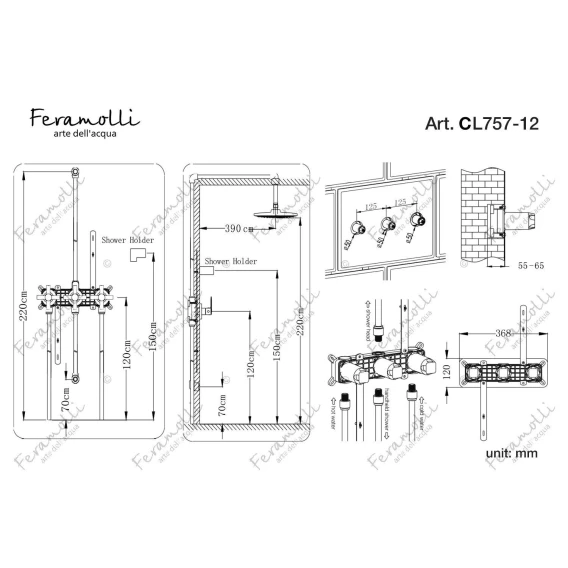 Душевой комплект 550x230 мм Feramolli Termostato BL7070