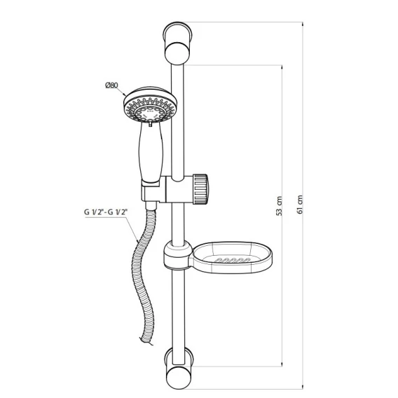 Крепление, Душевой шланг, Душевая лейка, Держатель для душевой лейки, Мыльница, Штанга душевая