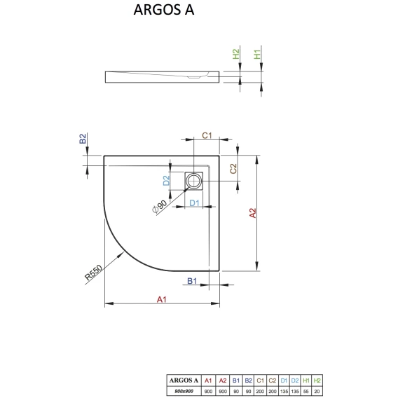 • Плоский полукруглый акриловый поддон — радиус r=550мм.