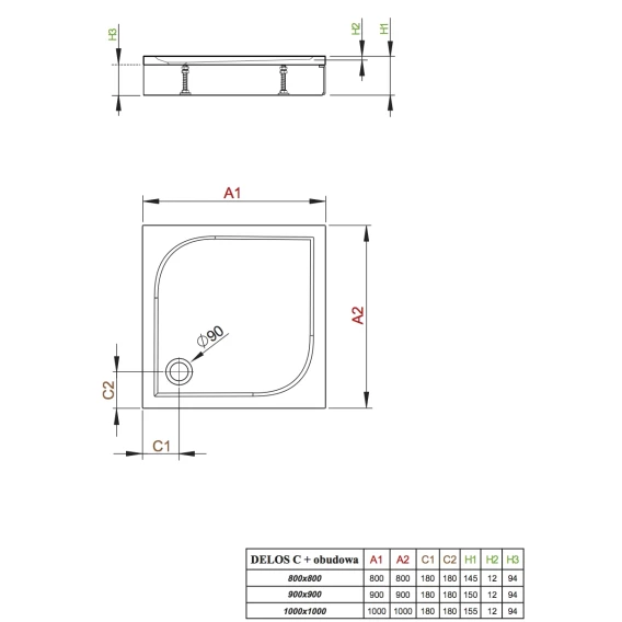 Акриловый поддон 80x80 см Radaway Delos C 4C88170-03