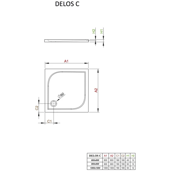 Акриловый поддон 90x90 см Radaway Delos C SDC0909-01