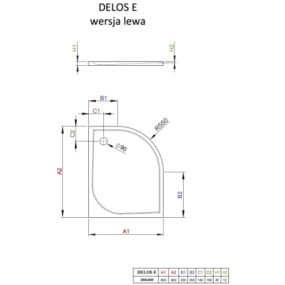 Акриловый поддон 90x80 см Radaway Delos E SDE9080-01L