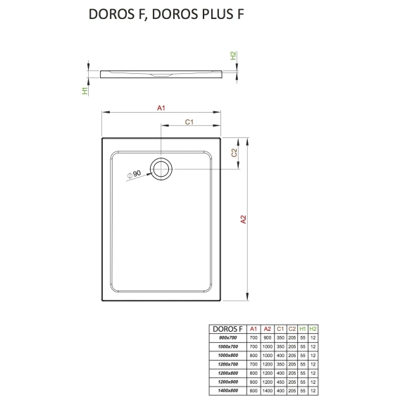 • Отверстие для сифона Ø90мм — по середине короткого бока.