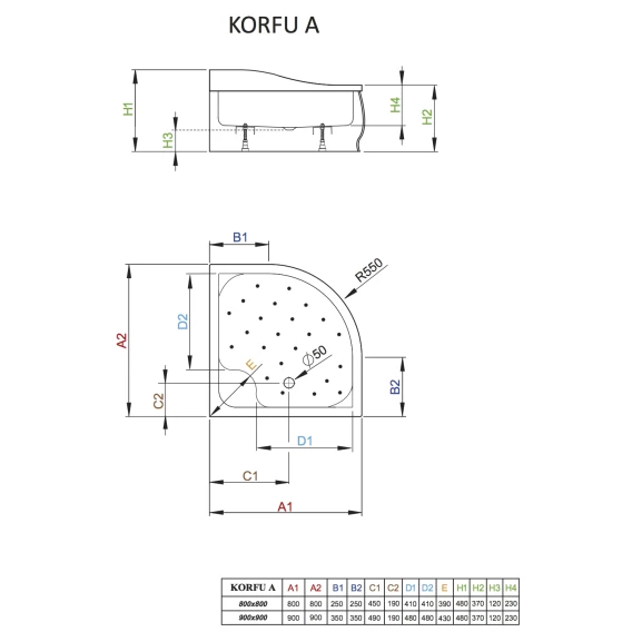 Акриловый поддон 90x90 см Radaway Korfu A 4S99400-03