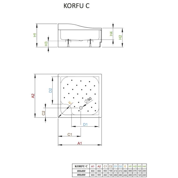 Акриловый поддон 80x80 см Radaway Korfu C 4C88400-03
