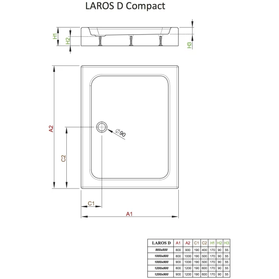 Акриловый поддон 100x90 см Radaway Laros D Compact SLD91017-01
