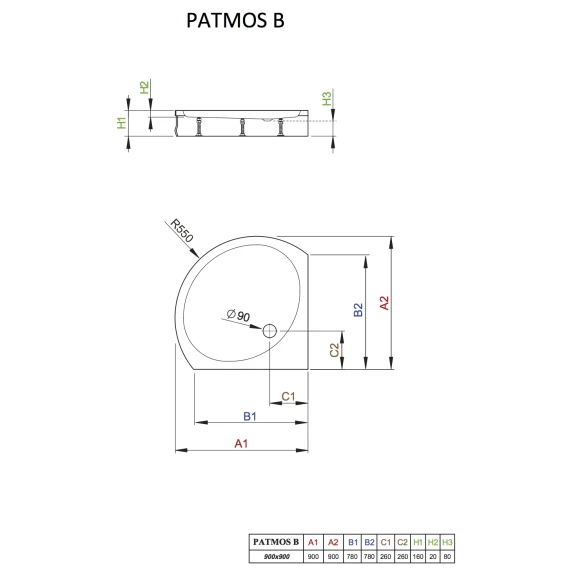 Акриловый поддон 90x90 см Radaway Patmos B 4T99155-03