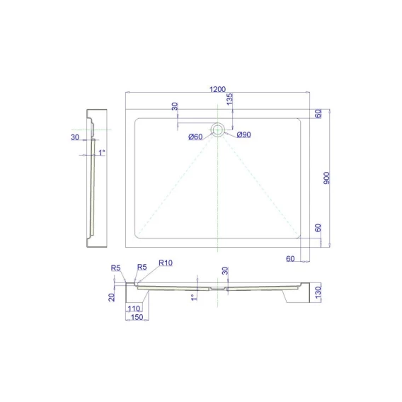 Акриловый поддон 120x90 см Royal Bath RB9120HP