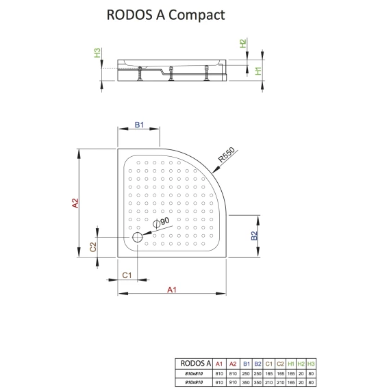 Акриловый поддон 91x91 см Radaway Rodos A Compact 4P99155-03