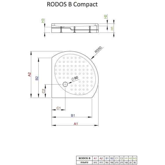 Акриловый поддон 91x91 см Radaway Rodos B Compact 4D99155-03
